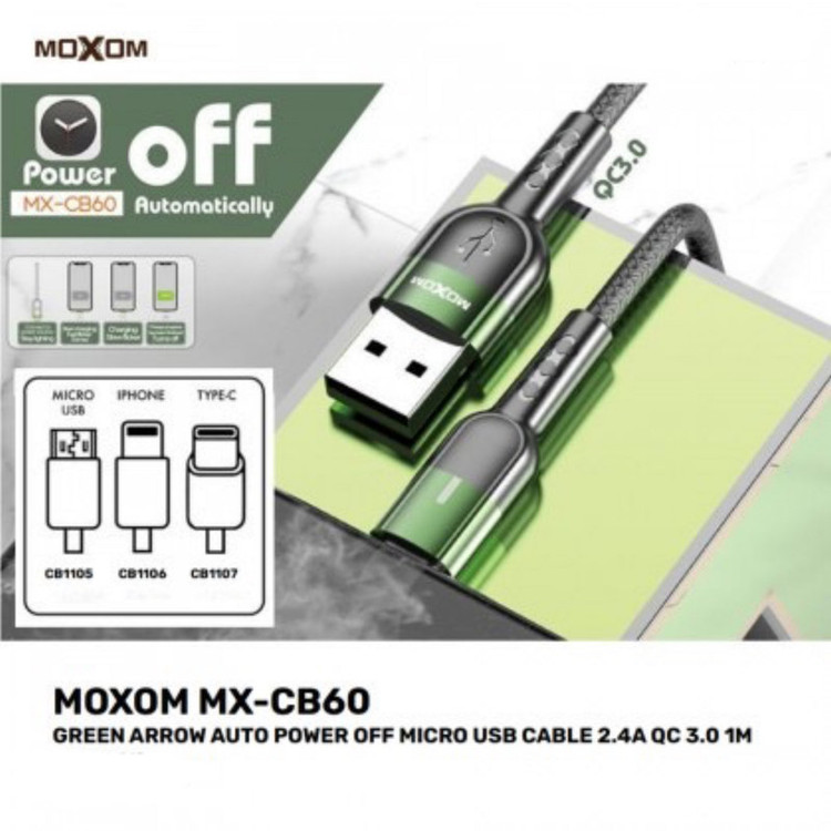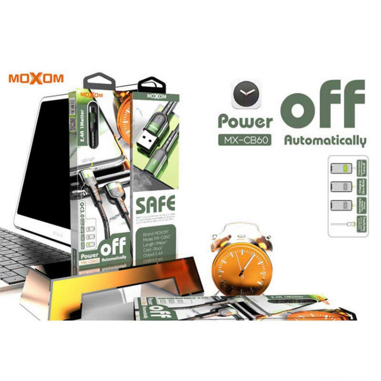 کابل شارژ موکسوم مدل CB-60 یکی از کابل شارژ های بسیار با کیفیت و محصول شرکت موکسوم است . این کابل شارژ علاوه بر قابلیت پشتیبانی از شارژ سریع QC3.0 و انتقال جریان 2.4 آمپر , انتقال داده را نیز انجام می دهد . از ویژگی های اصلی کابل شارژ CB-60 ; قابلیت قطع خودکار جریان در زمان پر شدن شارژ گوشی می باشد . و به این ترتیب از شارژ شدن بیش از حد گوشی جلوگیری می کند و با این کار مانع کاهش عمر باطری می گردد و از داغ شدن گوشی هم ممانعت می کند . کابل شارژ موکسوم مدل CB-60 دارای چراغ LED است که شارژ شدن گوشی را نمایش می دهد .