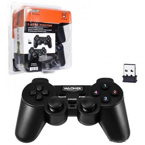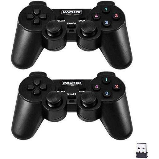 دسته بازی مچر مدل MR-W64 برای کامپیوتر و نت بوک طراحی شده است که دارای دو دسته بازی بی سیم است و با رابط USB متصل می شود. این دسته ی بازی از 10 کلید اصلی، 4 کلید روی شانه و 3 کلید Mode/Select/Start تشکیل شده است. این دسته های بازی شوک دار هستند که دارای اهرم هایی روی دسته اند که جهت حرکت را بهتر و راحت تر به رایانه انتقال می دهند و در بعضی از بازی ها در شرایط خاص به لرزش در می آیند و موجب ایجاد هیجان مضاعف در هنگام بازی می شوند. فرکانس این دسته بازی مچر 2.4Ghz می باشد. این دسته از طراحی ارگونومیک برخوردار است که خوش دست بودن و کارایی بهتر را برای کاربر فراهم می کند. این دسته ها چراغ LED و همچنین کنترل دیجیتال و آنالوگ با دکمه Mode را دارا می باشند. منبع تغذیه این دسته های بازی باتری نیم قلم (AAA) است. دسته بازی مچر مدل MR-W64 از سیستم عامل های Windows 98/2000/XP/2003/VISTA/7 پشتیبانی می کند.