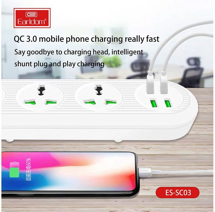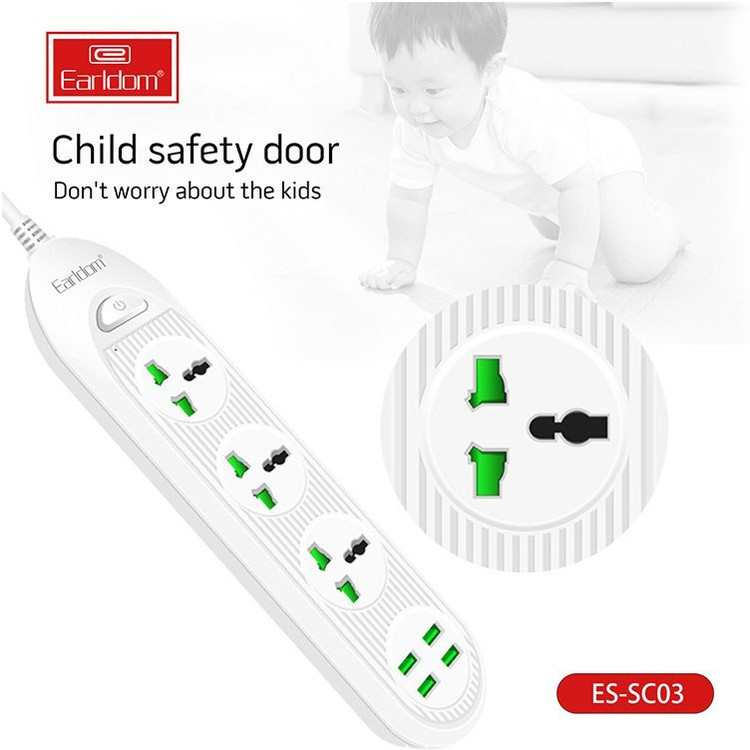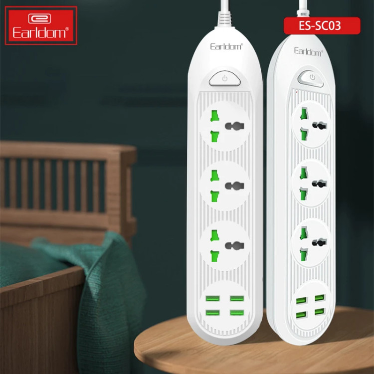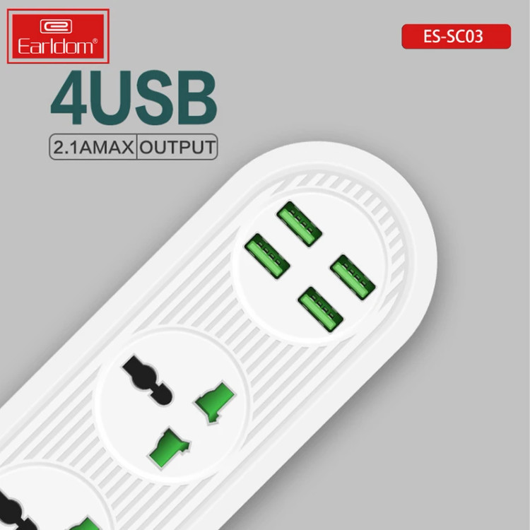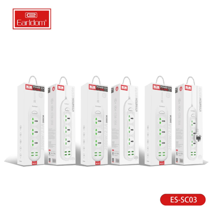 چند راهی برق ارلدام مدل ES-SC03 با کابل ۲ متری و ۴ پورت USB