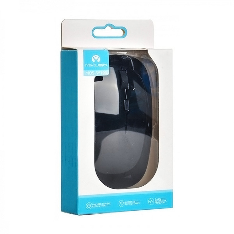 ماوس میکاسو مدل MOS-W103 به صورت بی سیم به وسیله دانگل USB با فرکانس 2.4 گیگاهرتز به سیستم متصل می شود. این محصول از سیستم عامل های ویندوز، لینوکس، مک و اندروید پشتیبانی میکند. دارای حسگر اپتیکال با میزان دقت قابل تنظیم 800/1200/1600 dpi به وسیله دکمه DPI می باشد. این ماوس دارای 4 عدد کلید فیزیکی شامل کلید های چپ و راست، اسکرول و کلید تنظیم حسگر (dpi) بوده و جنس استفاده شده در ساخت ماوس پلاستیک باکیفیت و مقاوم در برابر آسیب های احتمالی می باشد. این ماوس دارای طراحی جمع و جور و به صورت ارگونومیک می باشد و در استفاده طولانی مدت شما را خسته نخواهد کرد.