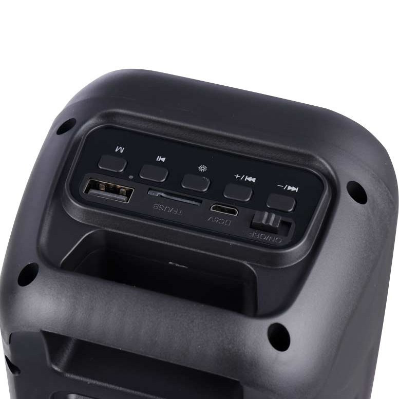 شما میتوانید با استفاده از بلوتوث / رم / فلش به این اسپیکر متصل شوید. همچنین 4 کلید بر روی اسپیکر تعبیه شده است تا درصورت لزوم از آن ها استفاده کنید.