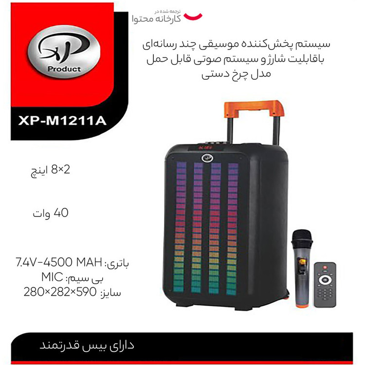 اقلام همراه بلندگو: یک عدد میکروفون، ریموت کنترل و آداپتور شارژ