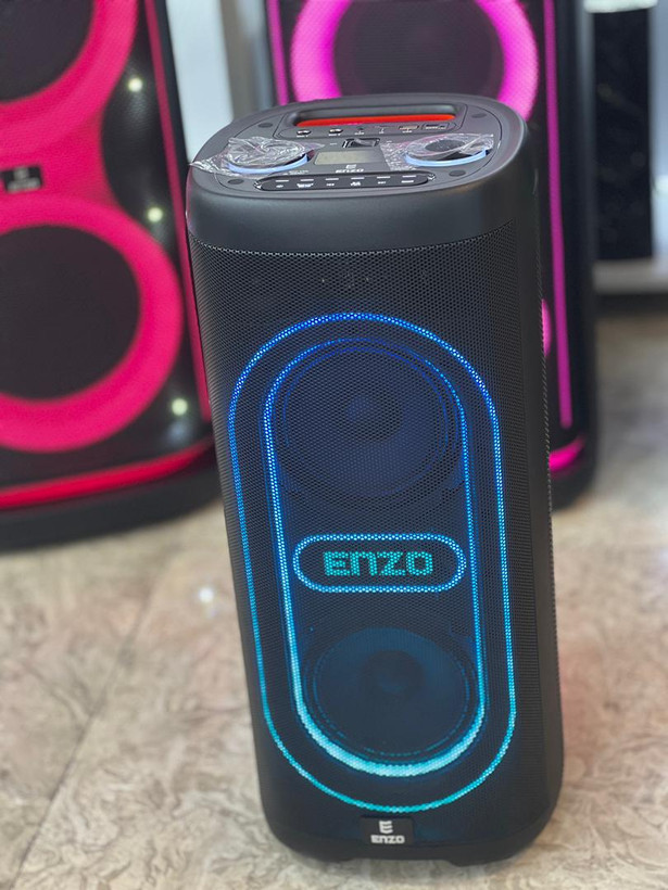 ENZO BOX 640 با نورپردازی LED دور درایورها، جلوهای بصری به محیط میبخشد و با امکاناتی چون جفتسازی TWS (برای صدای استریوی واقعی با اتصال دو اسپیکر)، پنل کنترل حرفهای و ورودیهای متنوع (USB/TF/AUX)، تمام نیازهای شما برای یک اجرای موسیقی بینقص را پوشش میدهد. همچنین، با وجود میکروفون بیسیم داخل بسته، راهاندازی بخش کارائوکه و اجرای سبک، بسیار ساده خواهد بود.