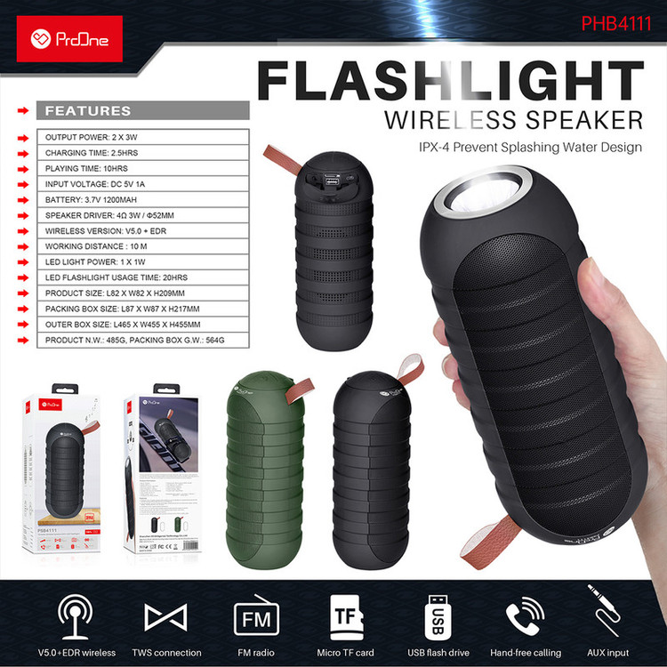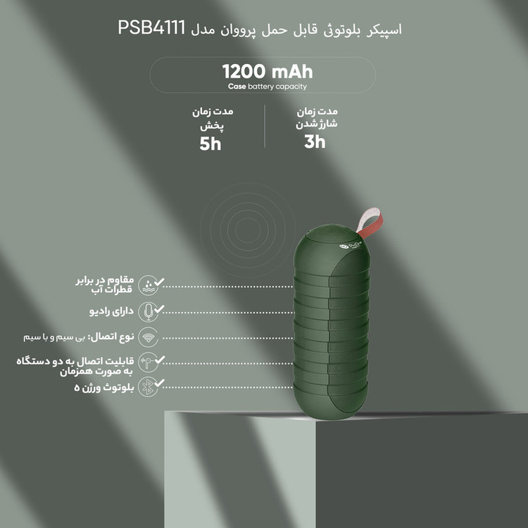 اسپیکرهای بیسیم یکی از جذابترین لوازم جانبی هستند که تاکنون طراحی و تولید شده است. بلندگوهای بیسیم با فراهم آوردن امکان پخش موزیک بدون وابستگی به کابل شارژ کاربران را در هر شرایط و محیطی همراهی میکنند. اسپیکر بلوتوث پرووان مدل PSB4111 یک ابزار برای پخش فایلهای صوتی است. به دلیل طراحی استوانهای شکل اسپیکر PSB4111 صدا در محیط به صورت 360 درجه پخش میشود. با قابلیت ویژه TWS در این اسپیکر، شما میتوانید دو اسپیکر پرووان PSB4111 را به هم متصل کرده و حجم صدای موسیقی را دو برابر کنید. شما با افزایش صدای موسیقی تجربه فیلم با صدای استریو را نیز خواهید دید. اسپیکر پرووان PSB4111 یک اسپیکر پرتابل است و هر جایی که بخواهید میتوانید آن را همراهتان ببرید. باتری داخلی اسپیکر ظرفیت برابر با 1200 میلیآمپر ساعت دارد. با دکمههای تنظیم صدا میتوانید موزیک را نیز عوض کرده و با دکمه پاور اسپیکر را خاموش و روشن کنید. با اسپیکرهای پرووان بدون نیاز به گوشی با کیفیتی بالا تماسهای خود را جواب بدهید که تنها کافی ست دکمه پاور را دوبار فشار بدهید. یکی از ویژگیهای مهم این اسپیکر داشتن چراغقوه است که تا 20 ساعت در صورت شارژ کامل قابلاستفاده است.