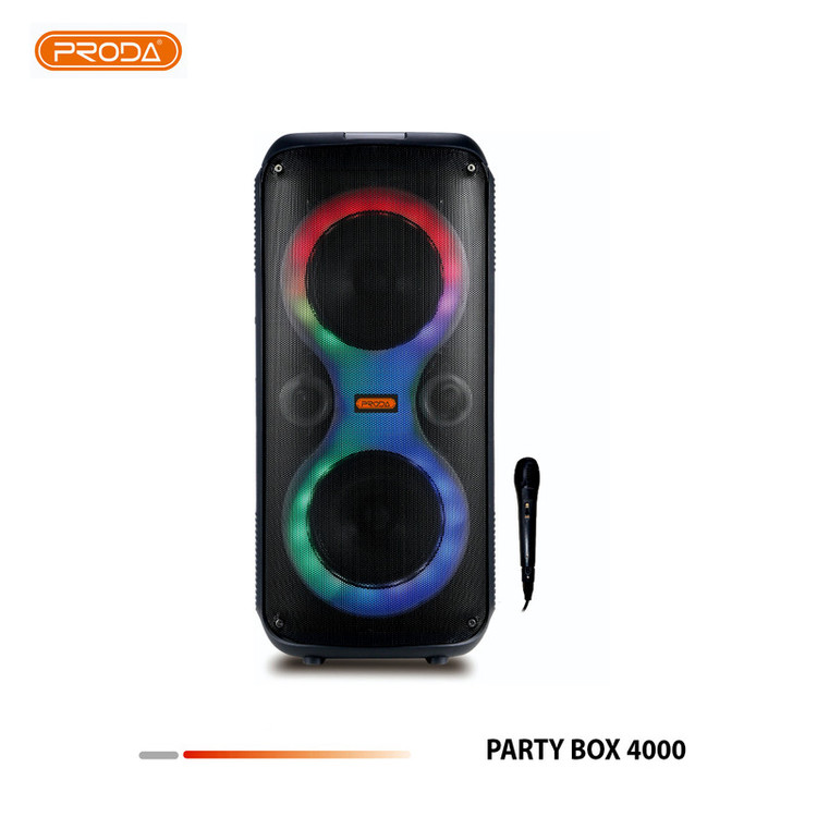با اسپیکر قدرتمند و قابل حمل PRODA PARTY BOX 4000 میتوانید مهمانی را با صدای قدرتمند و نمایش نور پویا شروع کنید. این دستگاه با نورپردازی منحصر به فرد LED هماهنگ شده، با صدای قدرتمند و باس عمیق، برای هر مهمانی، محتوای جدیدی به ارمغان میآورد.اسپیکر PRODA PARTY BOX 4000دارای یک طراحی زیبا و چشم نواز است که میتوان آن را با یک دست حمل کرد. همراه با صدای با کیفیت با ظرفیت قدرت 20 وات با پاسخ فرکانس100 هرتز تا 20 کیلوهرتز و حساسیت 85دسی بل همراه است . اسپیکرهای PRODA PARTY BOX4000یک اسپیکر بلوتوثی با چراغهای LED زیبا و سیستم ارتقا یافته مدل قبلی این برند است. به راستی PRODA BOM PARTY BOX 4000 به شما تجربه سمعی و بصری بی نظیر و همه جانبه ای میبخشد که هر مهمانی را به یک اثر هنری تبدیل میکند. هر نوع موسیقی با نمایش نور پویا بهتر است. نمایش نور پویا که با ضربان همگام سازی میشود، رنگهای همگام با ضربات را به حرکت در میآورد، در حالی که استروبها و الگوهای قابل تنظیم چشمان شما را خیره میکند. این یک تجربه شنیداری و بصری منحصر به فرد است که هر مهمانی را به یک اثر هنری تبدیل مینماید. همچنین میتوانید مهمانی را تمام روز تأمین کنید.از سویی دیگر، با ورودیهای میکروفون و گیتار، میتوانید استعدادهای خود را هنگام آواز خواندن و بازی نشان دهید PRODA PARTY BOX 4000 لحظات خوشی را برای شما به ارمغان میاورد.
