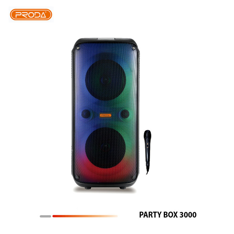با اسپیکر قدرتمند و قابل حمل PRODA PARTY BOX 3000 میتوانید مهمانی را با صدای قدرتمند و نمایش نور پویا شروع کنید. این دستگاه با نورپردازی منحصر به فرد LED هماهنگ شده، با صدای قدرتمند و باس عمیق، برای هر مهمانی، محتوای جدیدی به ارمغان میآورد.اسپیکر PRODA PARTY BOX 3000دارای یک طراحی زیبا و چشم نواز است که میتوان آن را با یک دست حمل کرد. همراه با صدای با کیفیت با ظرفیت قدرت 20 وات با پاسخ فرکانس100 هرتز تا 20 کیلوهرتز و حساسیت 85دسی بل همراه است . اسپیکرهای PRODA PARTY BOX 3000یک اسپیکر بلوتوثی با چراغهای LED زیبا و سیستم ارتقا یافته مدل قبلی این برند است. به راستی PRODA BOM PARTY BOX 3000 به شما تجربه سمعی و بصری بی نظیر و همه جانبه ای میبخشد که هر مهمانی را به یک اثر هنری تبدیل میکند. هر نوع موسیقی با نمایش نور پویا بهتر است. نمایش نور پویا که با ضربان همگام سازی میشود، رنگهای همگام با ضربات را به حرکت در میآورد، در حالی که استروبها و الگوهای قابل تنظیم چشمان شما را خیره میکند. این یک تجربه شنیداری و بصری منحصر به فرد است که هر مهمانی را به یک اثر هنری تبدیل مینماید. همچنین میتوانید مهمانی را تمام روز تأمین کنید.از سویی دیگر، با ورودیهای میکروفون و گیتار، میتوانید استعدادهای خود را هنگام آواز خواندن و بازی نشان دهید PRODA PARTY BOX 3000 لحظات خوشی را برای شما به ارمغان میاورد.