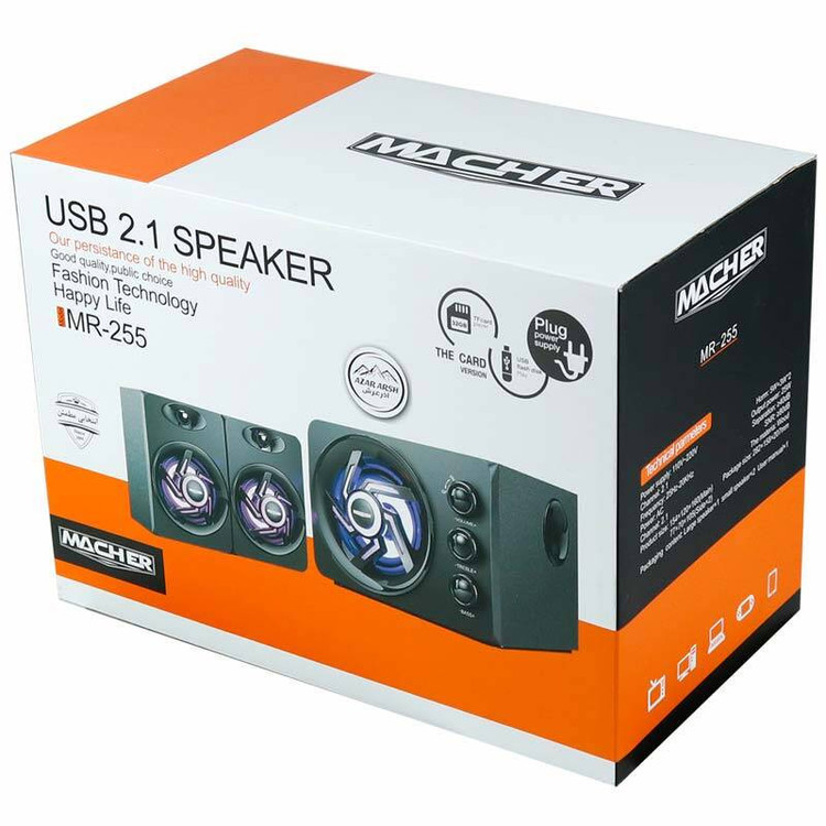 اسپیکر 3 تکه مچر مدل MR-255 با بهره گیری از صدای مناسب با توجه به حجم نسبتا کم خود، مورد مناسبی برای استفاده شما در منزل محل کار و... است. با توجه به تغذیه از برق شهری قابل حمل به هرجایی نیست اما با توجه به حجم و وزن کم در صورت دسترسی به برق شهری جابه جایی آن هم کار سختی نیست. بهره گیری از اتصال بلوتوث ورژن5 و وجود درگاه MicroSD و USB امکان هر نوع اتصال با سیم و بدون سیم را به شما میدهد. وجود LED هم ظاهر شکیلی به این اسپیکر داده است.