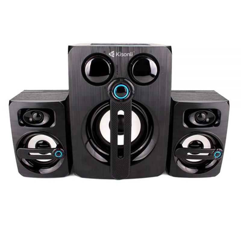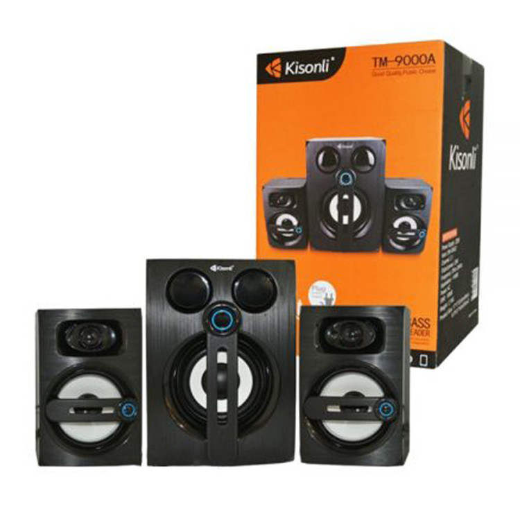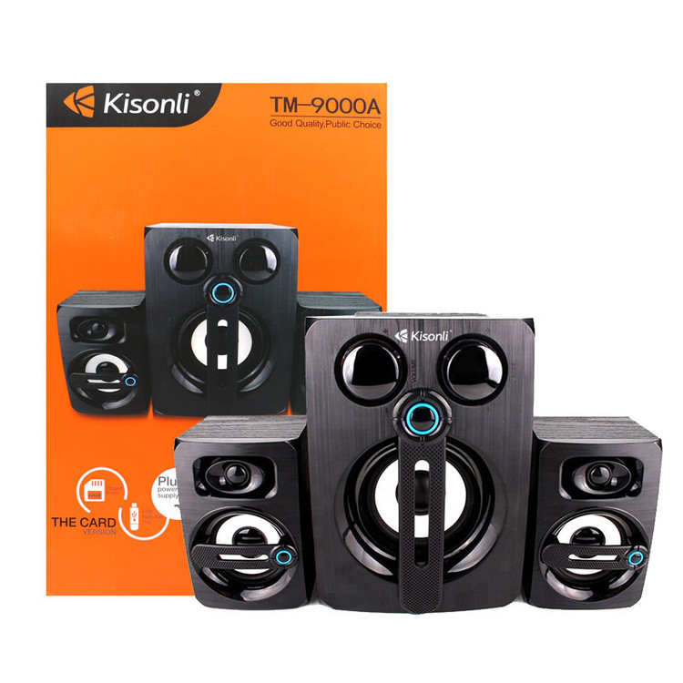 قطعا تا به حال برای همه ما پیش آمده است که با یک تیر دو نشان بزنیم، یعنی در خرید یک محصول با قیمت مناسب از کیفیت بالای آن نیز بهرهمند شویم. اسپیکر سه تکه مدل TM-9000A یک بلندگوی دارای امکانات مناسب میباشد که شاید در بسیاری از دیگر اسپیکرها مشاهده نشود. اگر جزو آن دسته از افرادی هستید که از سروکله زدن با دنیای کابلهای کوچک و بزرگ بیزارید، اسپیکر سه تکه TM-9000A در دو مدل اتصال با سیم برای مشتریانش تولید شده است. نوع اتصال دهنده از پورت USB , شیار کارت حافظه , بلوتوث پشتیبانی میکند که این در کنار پورتهای دیگر کامل میشود. شرکت Kisonli که اسپیکر سه تکه TM-9000A را به بازار عرضه کرده است، به طراحی و تولید محصولات زیبا و با کیفیت معروف است. از این رو این بلندگو نیز یکی دیگر از محصولاتی است که توانسته نظر بسیاری از افراد را به خود جلب کند. استفاده از یک کابل AUX باعث خواهد شد تا شما هر موسیقی دلخواه موجود در گوشی همراه و تبلت تان را به راحتی و با صدای بلندتری از اسپیکر پخش کنید.